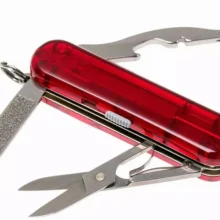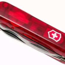 چاقوی ارتش سوئیس ویکتورینوکس، یک چاقوی ارتش سوئیسی با طول 58 میلیمتر و دسته قرمز شفاف، با وجود اندازه متوسط خود،مزایای زیادی دارد. سهولت استفاده با کاربردی بودن هر ابزار ترکیب شده و توجه دقیقی به جزئیات با پیچیدگی ظاهری دارد.همچنین اندازه جمع و جور چاقو به شما این امکان را میدهد که به راحتی آن را در جیب یا کیف کوچک خود قرار دهید و در دسترس داشته باشید.