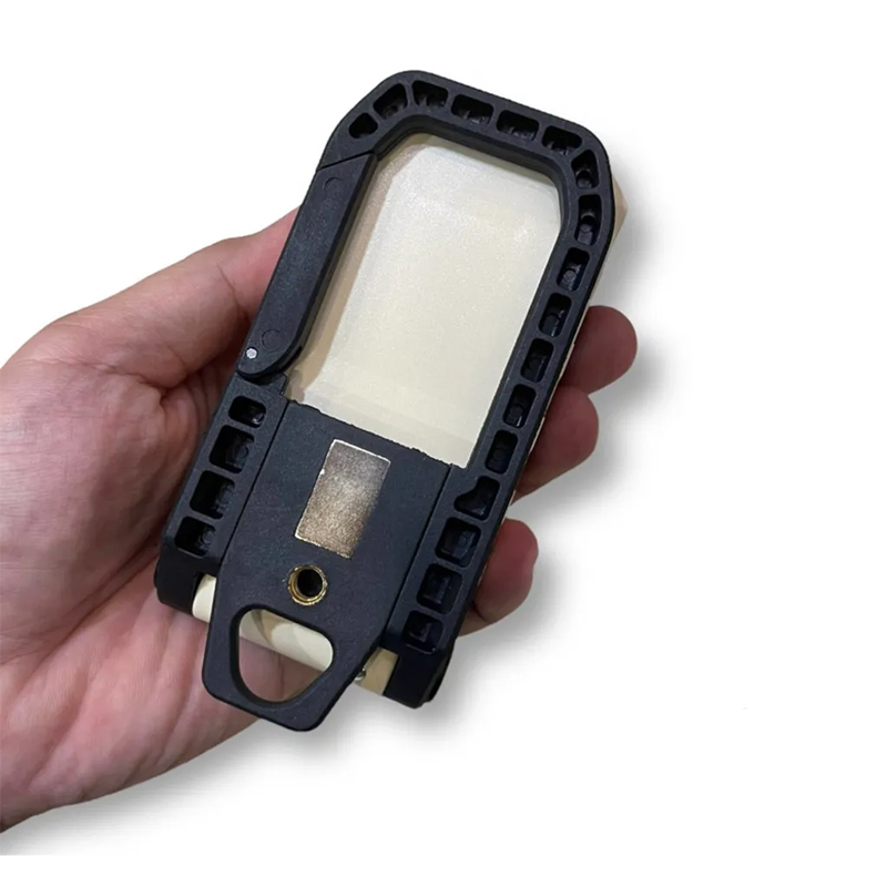 ساختار بدنه پرژکتور از پلاستیک فشرده شده بسیار با کیفیت و مقاوم در برابر ضربه تشکیل شده است و در برابر نفوذ آب نیز از مقاومت بالایی برخوردار میباشد،قسمت پشتی چراغ قوه یک دستگیره تاشو طراحی شده که به صورت حمل دستی جهت انجام فعالیت های گشت و گزار در طبیعت قابل استفاده میباشد،قسمت بالایی این دستگیره نیز به صورت گیره ای یا کارابینی طراحی شده که میتوان به راحتی در هر نقطه ای چراغ قوه را آویزان نمود.