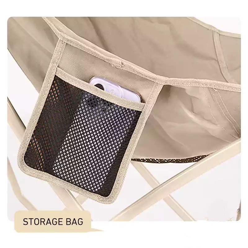 از دیگر قابلیتهای کاربردی این مدل میتوان به جیب جانبی آن اشاره کرد که برای نگهداری وسایل کوچک مانند موبایل، دفترچه یادداشت، یا ابزار شخصی طراحی شده و به کاربر امکان میدهد وسایل مورد نیاز خود را همیشه در دسترس داشته باشد.فرم X شکل پایهها نیز ثبات بیشتری به صندلی بخشیده و امکان استفاده ایمن روی سطوح ناپایدار را فراهم کرده است.پارچه مرکزی صندلی با طراحی مشبک تنفسی، علاوه بر حفظ استحکام، احساس خنکی را نیز در روزهای گرم به همراه دارد.