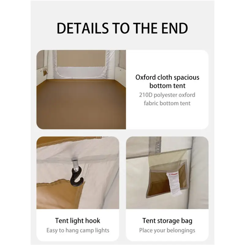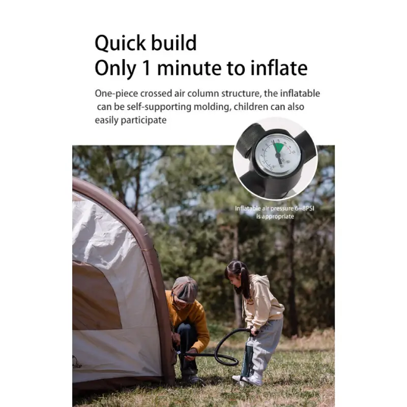 چادر بادی Ango Air از برند معتبر نیچرهایک است که با سیستم راه اندازی بادی و توسط پمپ هوا به شما کمک می کند که در عرض تنها چند دقیقه شاهد برپایی چادری مستحکم و ایمن باشید.در واقع این چادر با فناوری ساخت بدون تیرک فلزی ساخته شده و تنها توسط یک پمپ باد به سهولت چادر آماده میشود تا دغدغه راه اندازی چادر را نداشته باشید.طراحی مقاوم و ضدآب آن، باعث میشود بتوانید در شرایط مختلف آبوهوایی و چهار فصل از آن استفاده کنید.