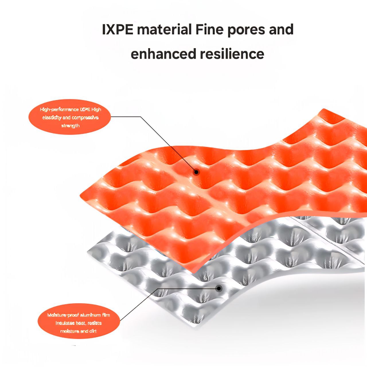 فوم IXPE چند لایه به کار رفته در زیرانداز IXPE-555 ساختاری فشرده دارد که حرارت بدن را متعادل نگه می دارد و از خروج گرما جلوگیری می کند.روکش آلومینیومی آن همانند یک لایه بازتاب دهنده عمل کرده و گرما را دوباره به بدن باز می گرداند و مانع از سرد شدن شما هنگام استراحت روی زمین می شود.