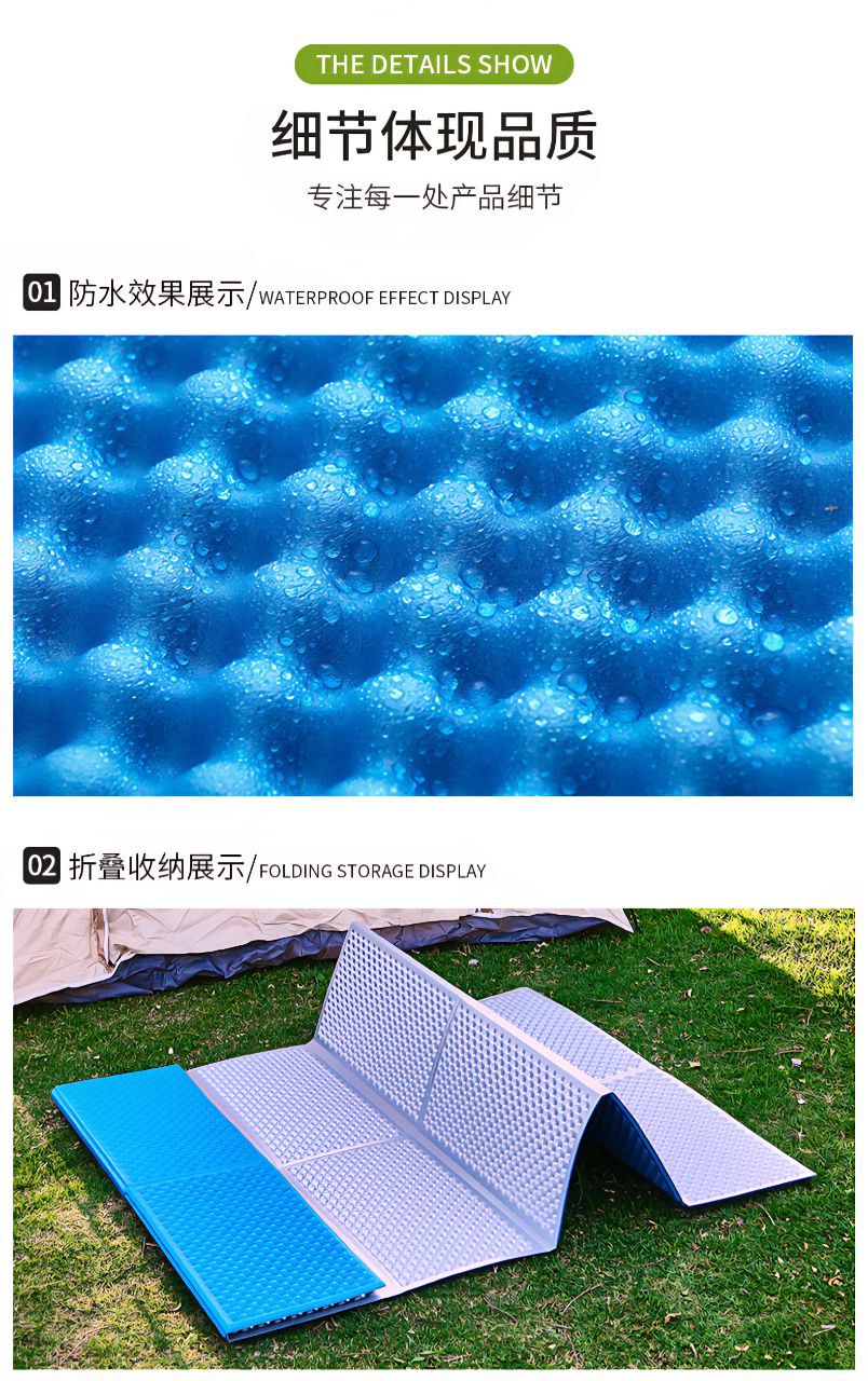 این زیرانداز آکاردئونی از نفوذ آب و رطوبت به داخل جلوگیری کرده و حتی در تماس مستقیم با چمن یا خاک مرطوب نیز خشک باقی می ماند.جنس IXPE همچنین خاصیت آنتی باکتریال و ضد تعریق دارد. بنابراین حتی در هوای گرم یا شرجی نیز سطح زیرانداز خنک و خشک باقی می ماند. این ویژگی برای سفرهای طولانی و استفاده مکرر بسیار مهم است. تمیز کردن آن بسیار ساده است، برای این کار فقط کافیست با دستمال مرطوب روی سطح این زیرانداز بکشید.