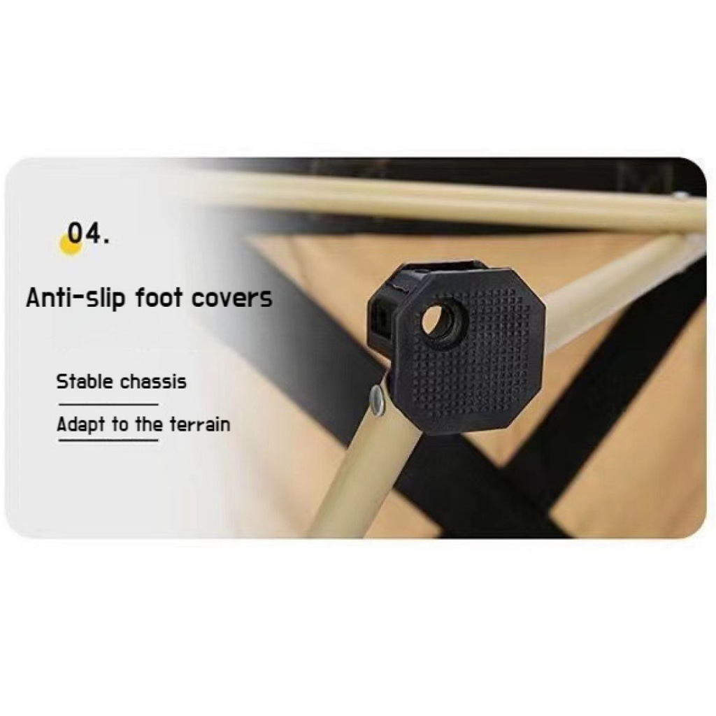 قطعات پلاستیکی استفاده شده در این صندلی تاشو، متریال با کیفیت ABS و بسیار بادوام است و مقاومت مکانیکی بالایی دارد و طراحی آن بهصورتی است که، هنگام نشستن کاملا ثابت میماند و از لغزندگی جلوگیری میکند.پرچ های تقویت شده مستحکم ،پایه های ضد لغزش ،داشتن ابری پشت گردن ،طراحی ارگونومیک استاندارد و تنفس پذیری از دیگر ویژگی های این صندلی کمپینگ میباشد.درضمن این محصول برای راحتی بیشتر دارای یک کیف حمل است که علاوه بر حمل آسان، از محصول در برابر آسیب دیدگی محافظت میکند.